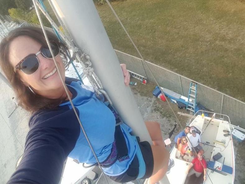 While we were there to check out Dan’s great work, we found Matt Cerralvo all the way up Holiday’s mast replacing the windex. How’s the view, Matt?